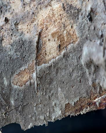 Hymenophore at first discontinuous, furfuraceous or tufted, then continuous, smooth to strongly