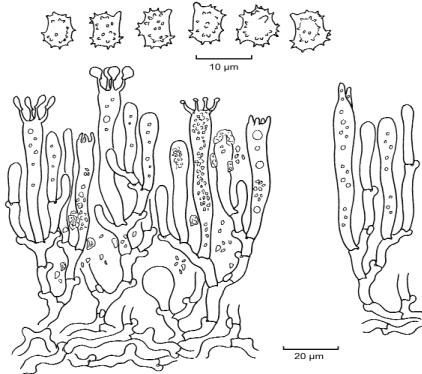 Spores: brownish, partially triangular, rarely lobed, mostly somewhat