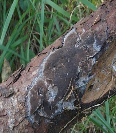 Fruchtkörper: anhaftend, krustenartig, kompakt